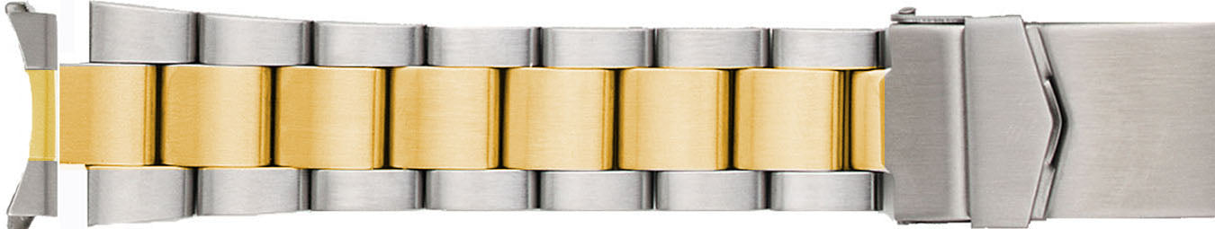 599 Curved End Stainless Steel Men's Buckle Watch Band - SOLID LINKS