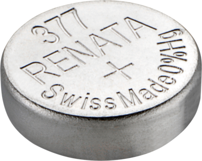 It measures 6.8 X 2.6mm. Renata 377 is mercury free and has a capacity of 24 mAh.