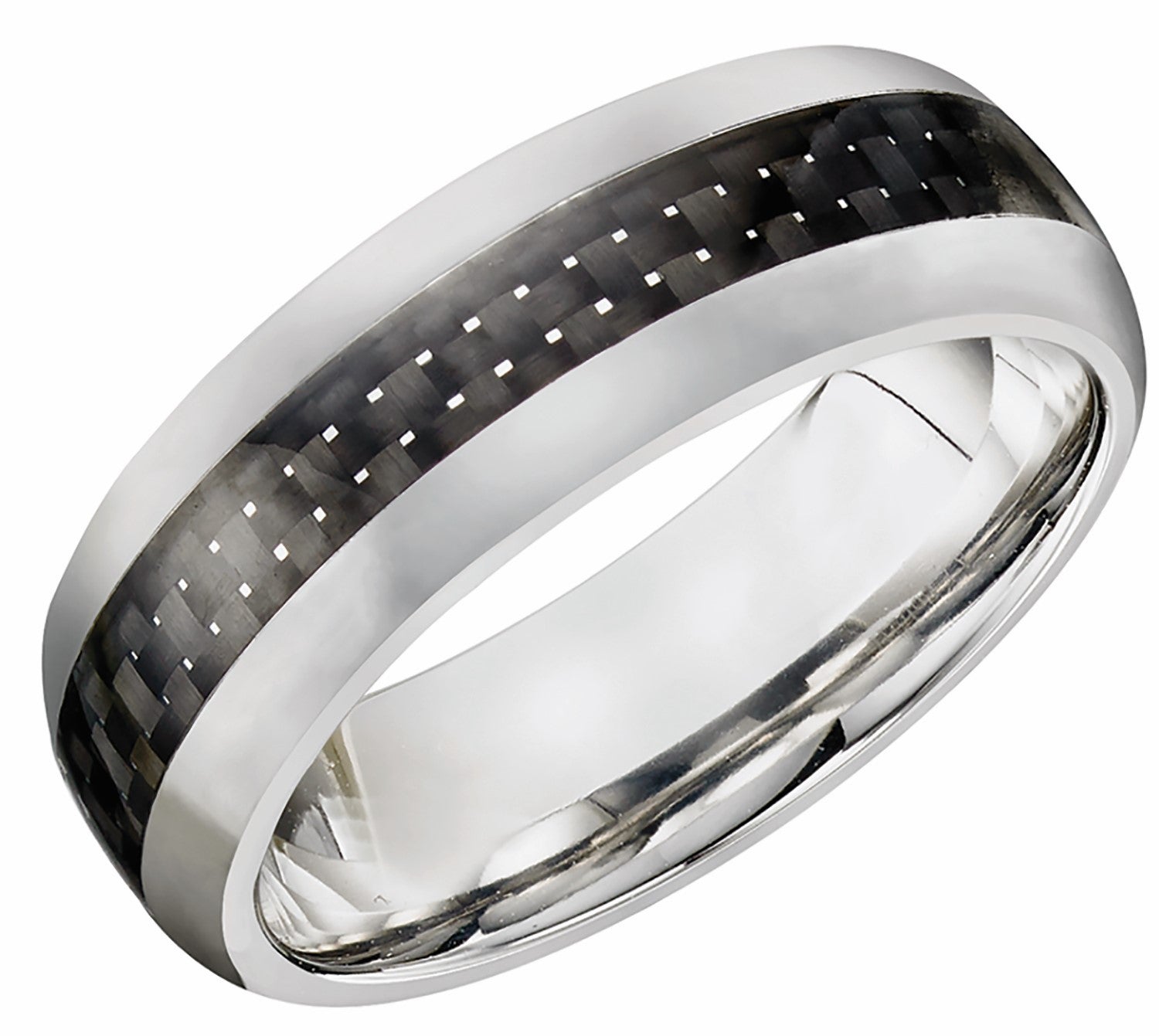 This cobalt band is finished with shiny edges and carbon fiber in the center