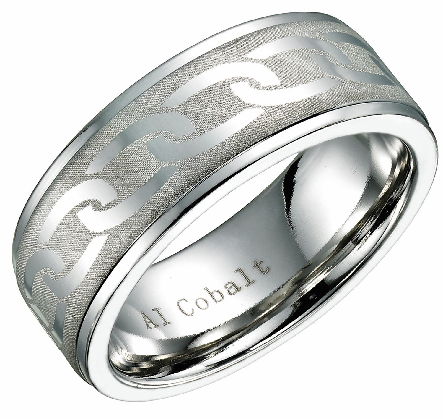 This cobalt band is finished with laser chain design on the top and has combination of satin/ shiny finish.