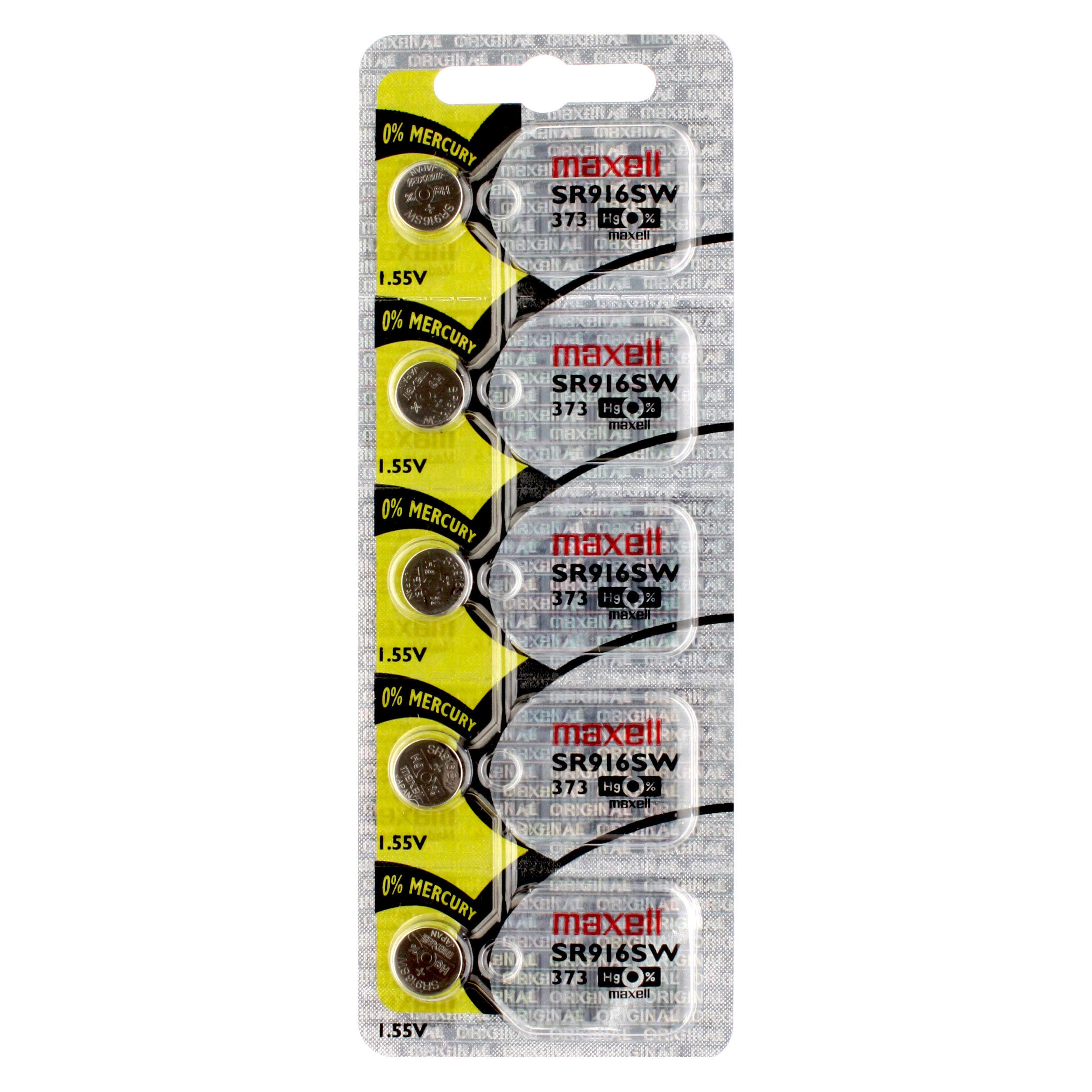 Maxell Watch Battery SR916SW is a silver oxide low drain battery 1.55 V. Watch Battery SR916SW measures 9.5X1.6mm. It is mercury free and has a capacity of 29 mAh.