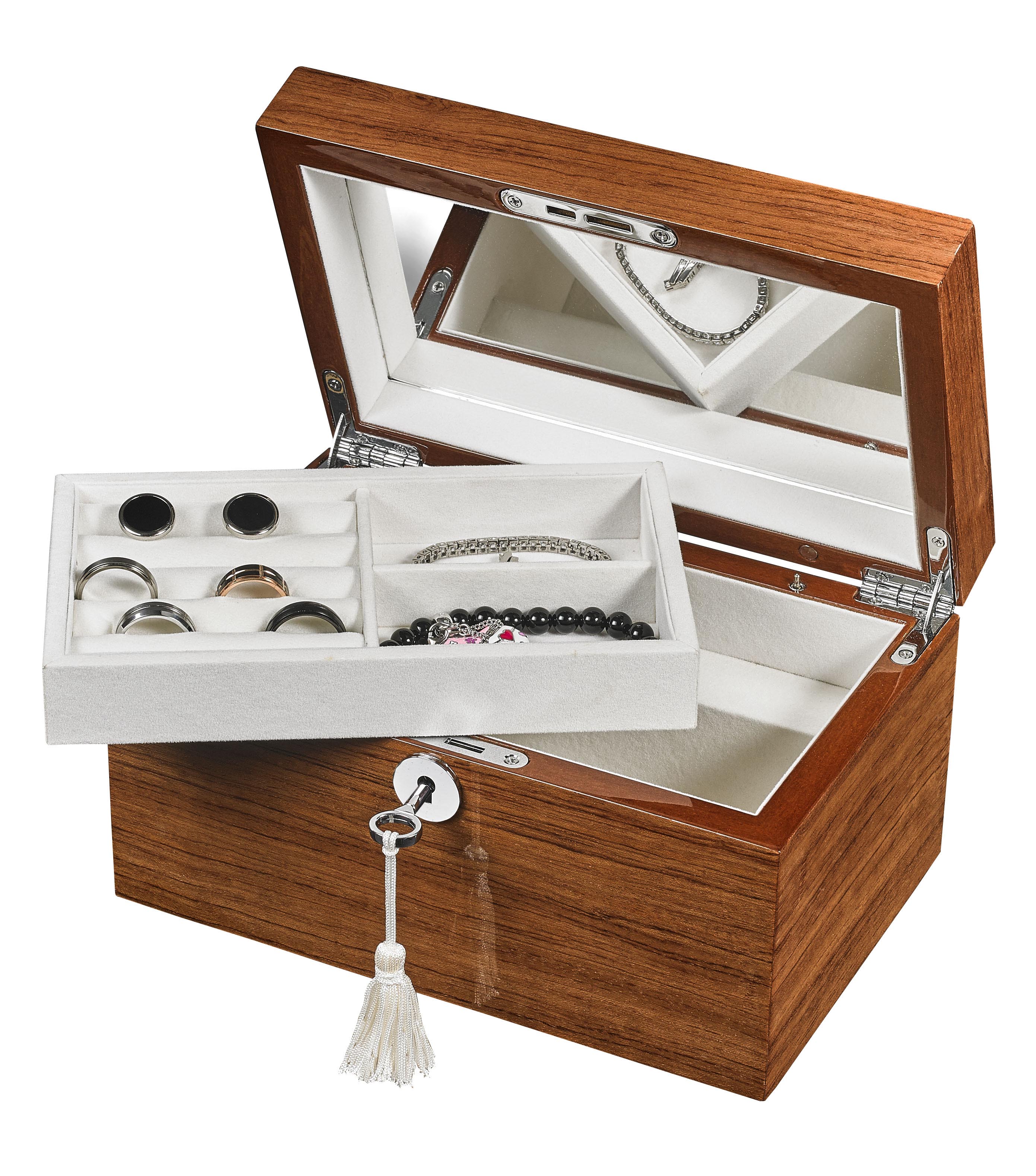 The ALPINE Musical Jewellery Box MB-114 is a must-have for any jewelry lover. With its spacious interior, it can easily store your precious wedding bands and bracelets. Plus, the beautiful musical feature adds a touch of elegance to your collection. Keep your jewelry safe and organized with this expertly designed box.