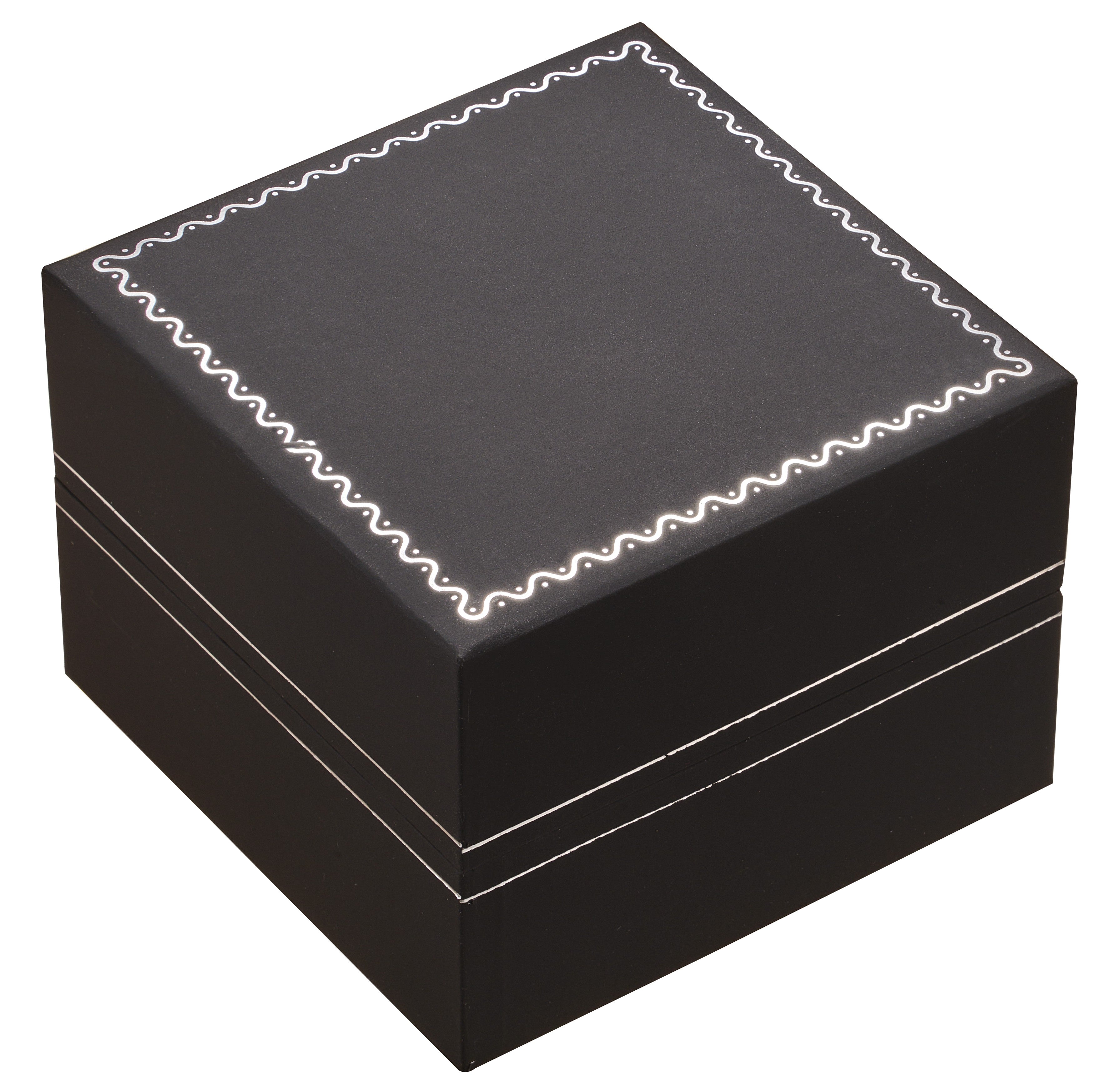 Grey color solid plastic watch box with black velvet interior and black pillow.