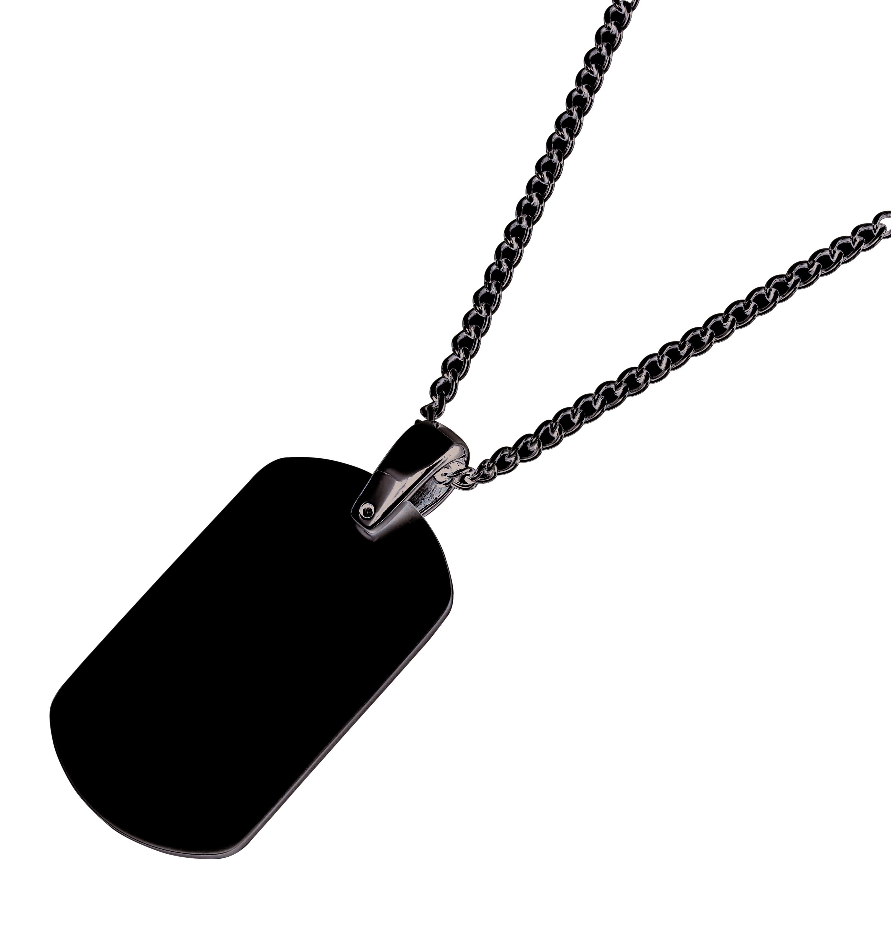Stainless Steel pendant supplied with stainless steel necklace. Pendant and chain is PVD Plated in black.